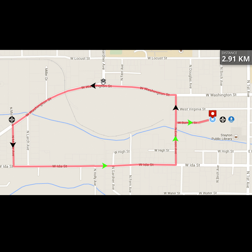 This is a 1.81 mi (2.91 km ~ each km marked on map) Run in Stayton, OR. The Run has a total ascent of 19.65 ft and has a maximum elevation of 468.04 ft.